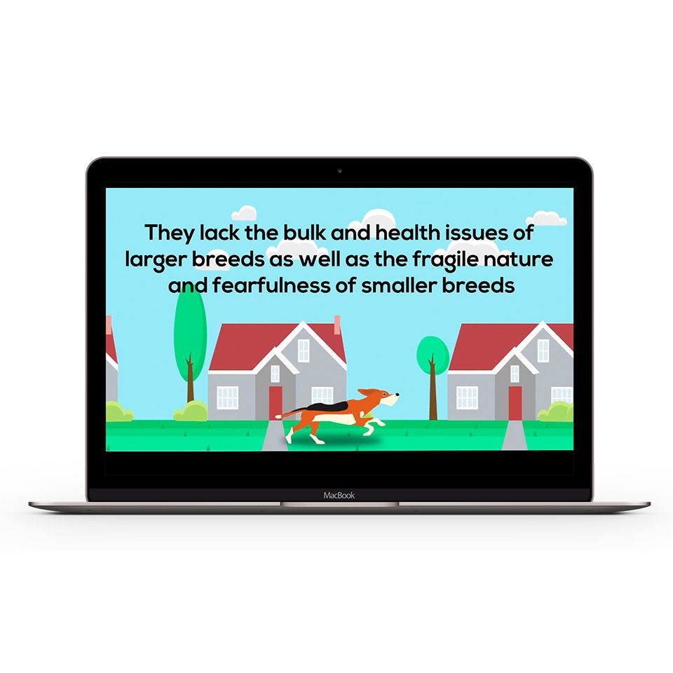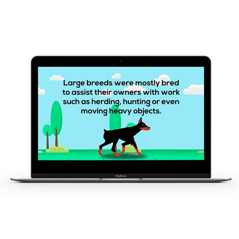 This was the designers’ first attempt at story-telling and producing a longer video animation using Adobe After Effects. The chosen complex concept to convey, was to answer the question: “Why do we have different dog breeds?”.